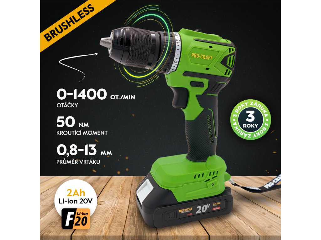 Akumulátorový skrutkovač Procraft PA18LiN je poloprofesionálny praktický nástroj na použitie všade tam, kde nechcete byť pri vŕtaní a skrutkovaní obmedzovaní napájacím káblom. Skrutkovač s pravým/ľavým smerom otáčania a uťahovacím momentom až 50 Nm je vhodný na skrutkovanie skrutiek, matíc a skrutiek s 1/4" bitmi. Uťahovací moment nastaviteľný v rozsahu 20 stupňov. Rýchloupínacie skľučovadlo umožňuje upínanie vrtákov a stopkových nástrojov s priemerom do 13 mm. Skrutkovanie na 1. a vŕtanie na 2. prevodovom stupni možno vykonávať s plynulou reguláciou otáčok. Na zvýšenie pracovného komfortu a stability je stroj vybavený prídavnou rukoväťou a integrovaným LED osvetlením pracovnej plochy s funkciou dosahu. Súčasťou dodávky je prepravný plastový kufor, 20V 2Ah akumulátor, nabíjačka, ohybný hriadeľ.