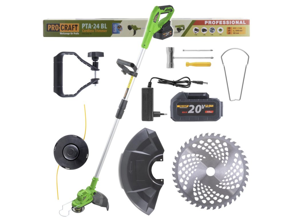 Aku vyžínač Procraft PTA24BL spája vysoký výkon s pohodlným ovládaním, čím sa stáva ideálnym strojom pre profesionálne aj hobby použitie.