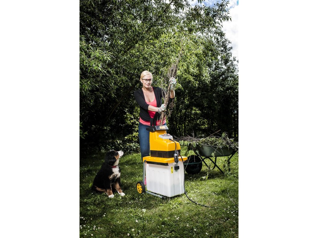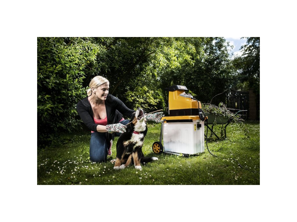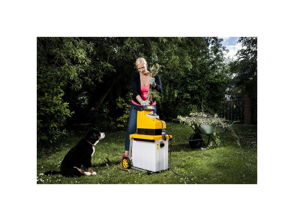 • vysoký drtící výkon až 44 mm • ideální na likvidaci dřevního odpadu po prořezávání, ošetřování nebo zmlazování keřů a stromů • zpracovává odpad na pravidelné štěpky, které se dají využít místo mulčovací kůry (stromy a keře se tak chrání před vysušením a zlepšuje se kvalita půdy) nebo jako výborné palivo do kamen • výkonný motor má vysoký výkon 3000 W, motorovou brzdu a kvalitní elektronickou ochranu proti přetížení. To vše je zárukou bezproblémové funkce a dlouhé životnosti stroje. • motor má zpětný chod pro snadné odstranění zaseknuté větve • indikace chodu motoru pomocí LED diody • stroj je opatřen velkým sběrným boxem o objemu 60 l z průhledného materiálu, takže vždy vidíte, kolik vám v plastovém boxu ještě zbývá místa pro další drť • velká transportní kola a madlo zaručují příjemnou manipulaci s celým strojem. • opláštění stroje kvalitním netříštivým plastem snižuje riziko poškození při nešetrném zacházení. • drtící ústrojí je uloženo v kovovém bloku a boky stroje jsou vyztužené, takže jsou odolné proti prasknutí i při drceních větví velkého průřezu • díky použité technologii pomaloběžného drtícího válce má stroj extrémně tichý chod, takže nikdy nebudete rušit svoje sousedy • díky ozubenému drtícímu válci si stroj sám vtahuje větve, což Vám ušetří spoustu námahy • vůle mezi drtícím válcem a opěrnou stěnou se dá lehce nastavit šroubem z boku stroje • snadno se skladuje – tělo stroje se dá vložit do boxu a ušetříte tak polovinu potřebného místa