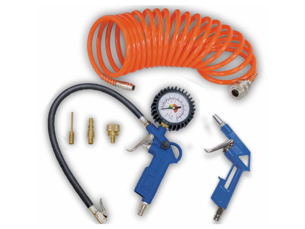 Základní sada příslušenství, která by neměla chybět u žádného kompresoru.Nástroje ze slitin kovů jsou vybaveny rychlospojkami.