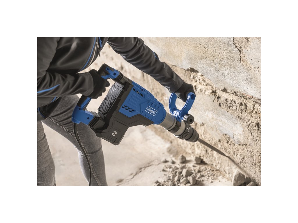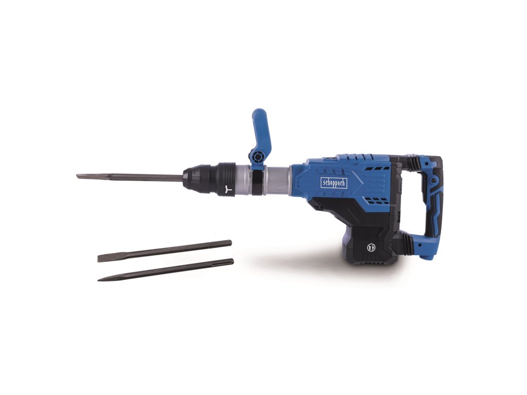 Scheppach AB 2000 je výkonné búracie kladivo so silou úderu 60 J. Je určené pre stredne ťažké až ťažké búracie práce v betóne, tehlách, kameni a ďalších stavebných materiáloch. Moderná konštrukcia je doplnená o mnoho funkčných a komfortných prvkov, ako sú protišmyková antivibračná rukoväť, madlo nastaviteľné v rozsahu 360° bez použitia náradia, poloha sekáča nastaviteľná do 12 polôh, 6 stupňov frekvencie príklepu v závislosti od materiálu, aretácia chodu spínača pre možnosť nepretržitého chodu , upínanie SDS MAX pre jednoduchú výmenu nástroja, 3 m dlhý prívodný kábel alebo robustný kufor s kolieskami. Silný motor 1700 W má zvýšenú ochranu proti prehriatiu. Upínací šesťhran 30 mm dovoľuje ľahkú výmenu sekáčov a úchyt zamedzuje ich pretáčaniu v stroji. Kladivo je už v základe vybavené základným príslušenstvom (plastické mazivo, náhradné uhlíky, imbusový kľúč) a dvoma sekáčmi s plochou a špicatou koncovkou