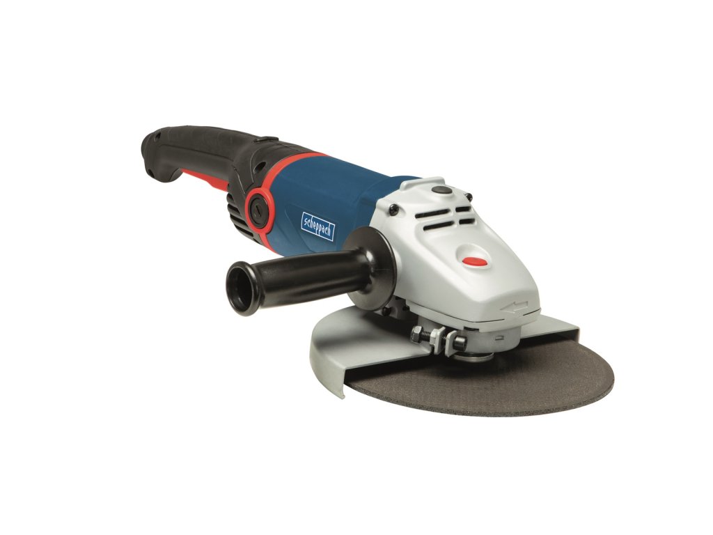 Scheppach AG 2200 je velká a velmi výkonná úhlová bruska s kotoučem 230 mm, vhodná pro všechny typy řezání a broušení, odstraňování barvy a rzi, zabrušování svárů, začišťování hran, řezání a broušení betonu, kamenů nebo obkladů. Silný motor s funkcí pomalého rozběhu (Soft Start) má vysoký výkon 2200 W a je vybaven kvalitním měděným vinutím. To zaručuje vysokou rezervu výkonu i při náročných činnostech. Bruska má odolnou kovovou převodovkou, která zajišťuje vysoký točivý moment, rukojeť, kterou lze nastavit do třech různých poloh podle typu práce (vhodná pro praváky i leváky), dále snadno nastavitelný kryt kotouče bez použití nářadí, aretaci vřetene pro snadnou výměnu kotouče a velký spínač pro pohodlnou práci. Rukojeť má komfortní protiskluzové zóny. Stroj se dodává v praktickém plastovém kufru.