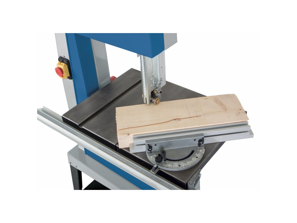 • Veľmi presné pravítko, osadené pre zlepšenie čitateľnosti mierky zväčšovacím sklom, sa dá uchytiť z oboch strán pílového pásu.