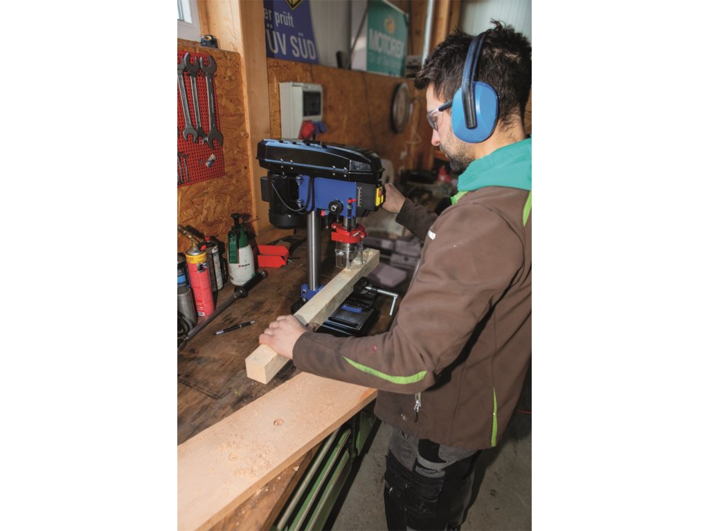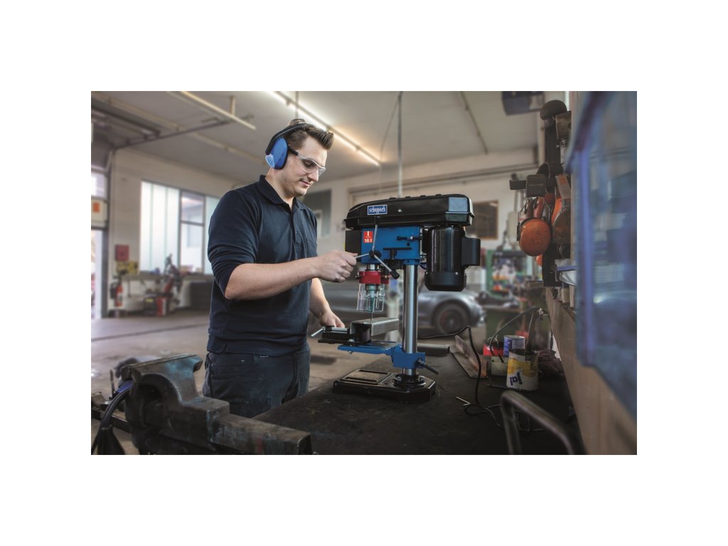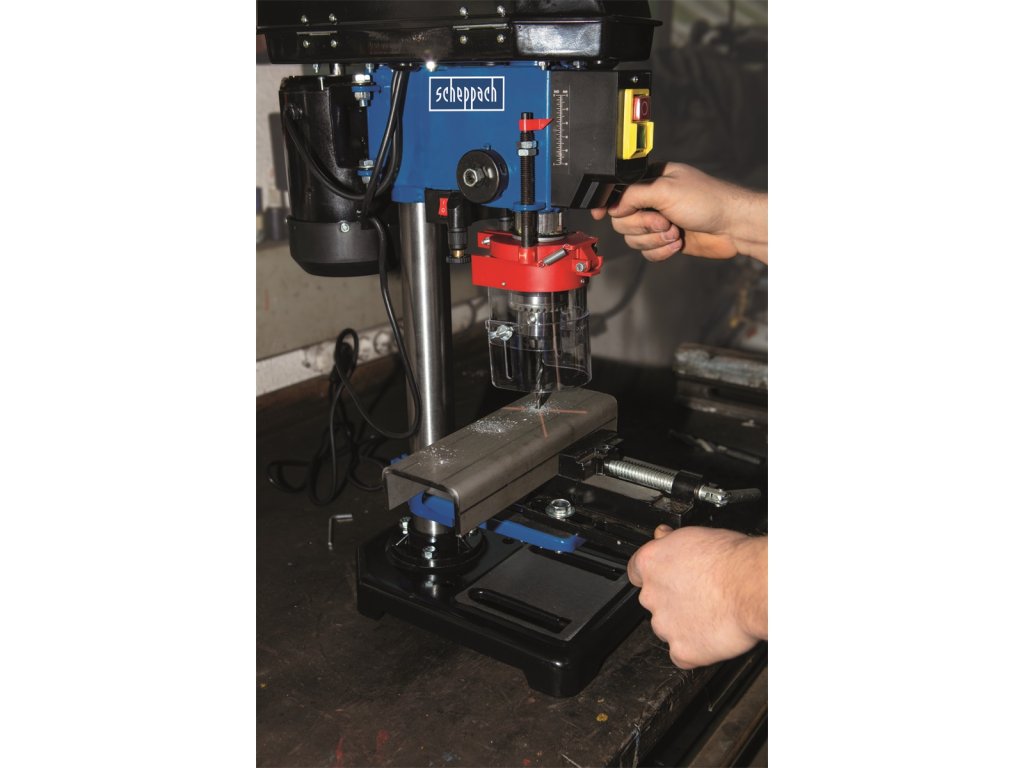 Stojanová vŕtačka Scheppach DP 16 VLS je výborne vybavený model malé stojanové vŕtačky vhodný hlavne pre náročných domácich majstrov, do malých dielní ap. Zásadný odlišnosťou od bežných strojov v tejto triede je krížový laser, ktorý umožní veľmi ľahkú orientáciu pri vŕtaní a urýchli prácu pri vŕtaní väčších sérií obrobkov. Stroj má robustnú oceľovú konštrukciu, skľučovadlo 13 mm v štandarde, päť stupňov rýchlosti pre prácu s tvrdým a mäkkým drevom, kovy i plasty, zverák pre pridržanie obrobku na pracovnom stole a silný motor 500 W, ktorý si poradí s akýmkoľvek materiálom. Stroj samozrejme spĺňa posledné požiadavky Európskej únie na bezpečnosť, ako je napr. Hlavný vypínač umiestnený na čele stroja, priehľadný kryt skľučovadla ap. Stroj je umiestnený na stabilnom podstavci s možnosťou pevného uchytenia skrutky k pracovnej doske alebo podlahe.