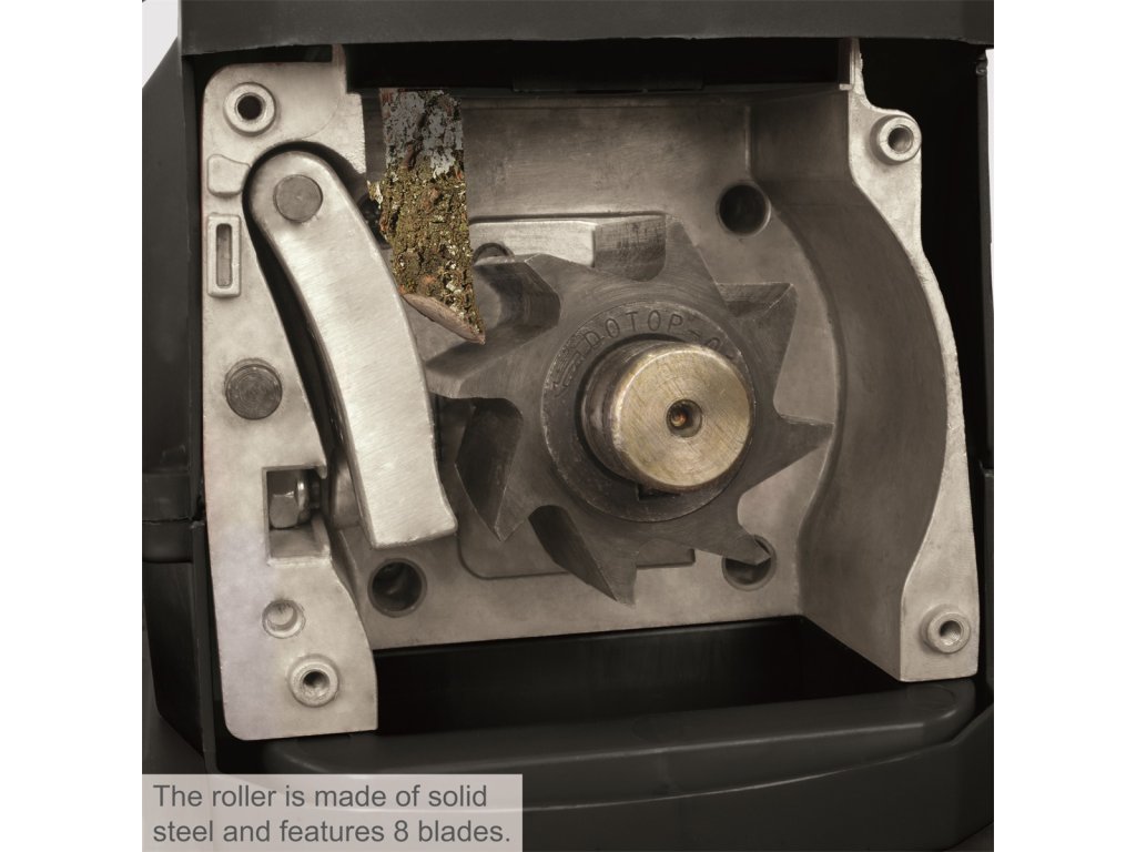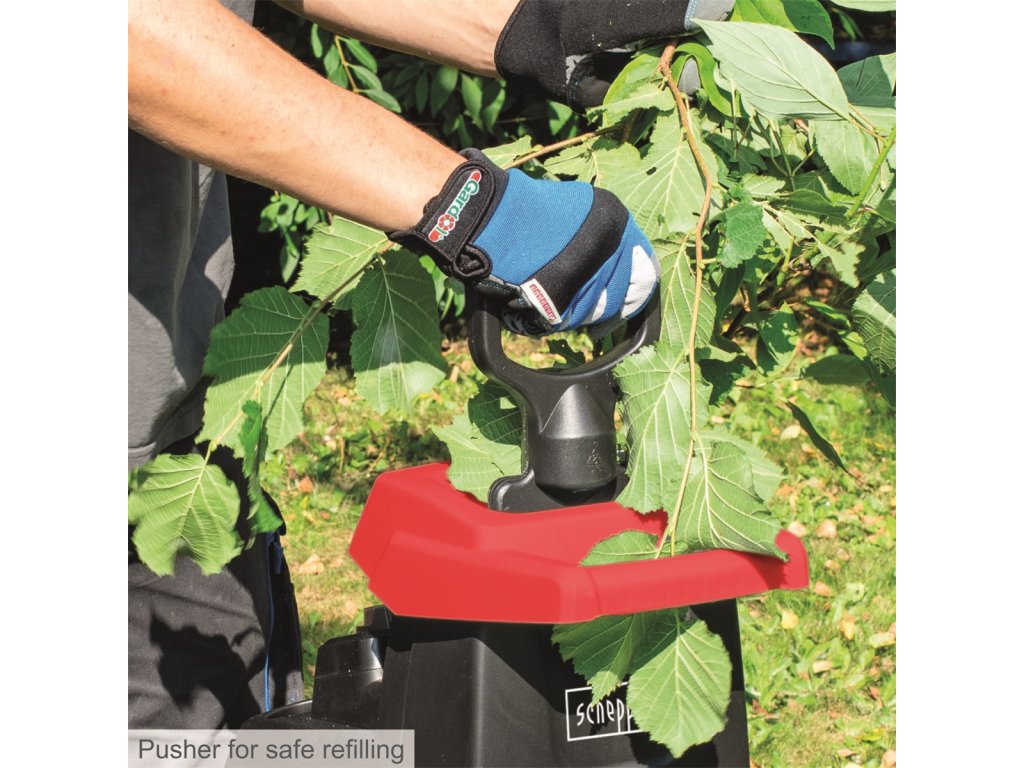 Scheppach GS 60 je praktický pomocník pro drcení zahradního odpadu, jako jsou větve prořezaných stromů nebo živých plotů, náletové dřeviny a podobný dřevní odpad. Zpracovává odpad na pravidelné štěpky, které lze využít pro účely kompostování, jako mulč nebo i jako palivo. K drtiči je standardně dodávaný integrovaný plastový sběrný box, do kterého lze štěpky zachytávat. Box je z průsvitného materiálu, takže lze snadno pohledem kontrolovat jeho naplnění. Základem výkonného drtícího ústrojí je pomaloběžný drtící válec, který je pro delší životnost uložen v pevném kovovém bloku. Ozubený válec si sám vtahuje větve do vnitřku ústrojí, což je velmi pohodlné. Díky nízkým otáčkám je stroj velmi tichý. Drtič je vybaven silným motorem 2800 W chráněným proti přetížení kvalitní elektronikou a motorovou brzdou. Má i zpětný chod pro snazší uvolnění vzpříčených větví. Stroj je dále vybaven pojezdovými koly a madlem pro snadný transport a tyčí na posunování větví. Součástí setu jsou i pracovní rukavice a zahradní nůžky.