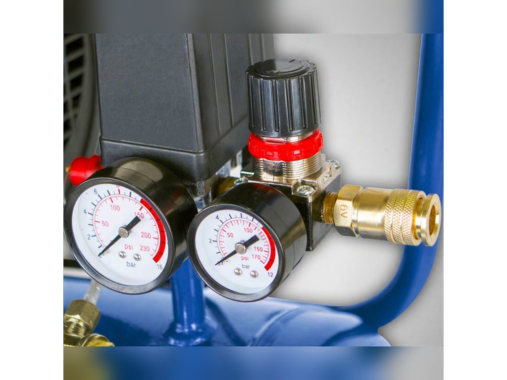 je nevyhnutným pomocníkom, ktorý by nemal chýbať v žiadnej domácej dielni. Pumpa stroja je u tohto kompresora mazané olejom, čo predlžuje životnosť celého stroja i pri častom používaní. Kontrola oleja je veľmi jednoduchá a vykonáva sa zbežným pohľadom pomocou optického ukazovateľa umiestnenom na stroji. Vzdušník slúži ako zásobáreň stlačeného vzduchu a motor sa tak zapína len v prípade, že tlak vzduchu klesne pod požadovanú úroveň. Vďaka vzdušníka môžete s kompresorom vykonávať aj náročnejšie operácie, ako je bežné hustenie či ofukovanie. Môžete k nemu pripojiť treba sponkovačku alebo zvládne aj menej náročné práce sa striekacou pištoľou a ďalšími pneumatickými nástrojmi. Pri dofukovanie pneumatík zase oceníte jednoduché nastavenie výšky tlaku, ktorý môžete ľahko kontrolovať pomocou vstavaného manometra. Prídavná rukoväť a kolieska umožní ľahkú manipuláciu so strojom. Stroj je vďaka svojim kompaktným rozmerom veľmi skladný a dá sa ľahko prevážať.