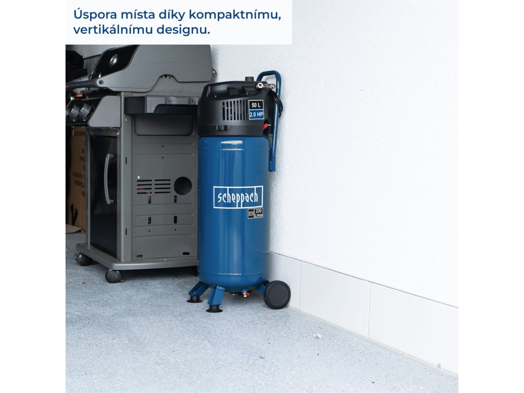 • Kompresor Scheppach HC 51 V je predstaviteľom novej generácie výkonných a priestorovo úsporných kompresorov s minimálnymi nárokmi na údržbu.