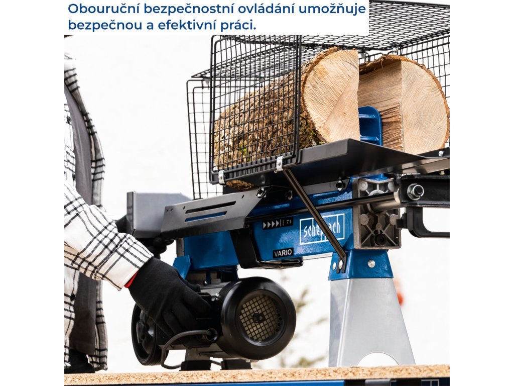 • Má odnímateľnú ochrannú klietku, predĺžený pracovný stôl, poistku uvoľnenie polená pri výpadku prúdu, automatickú funkciu návratu piestu a vďaka držadlám a kolesám je taktiež plne mobilný.