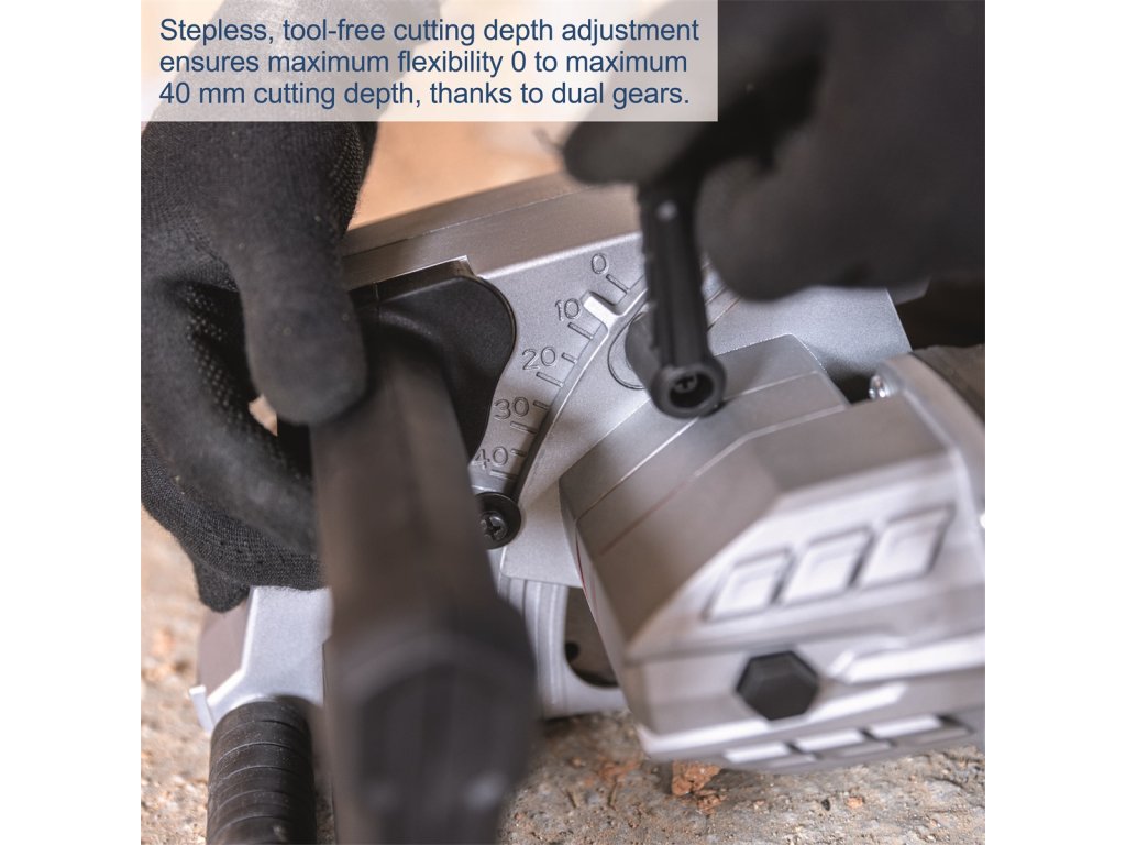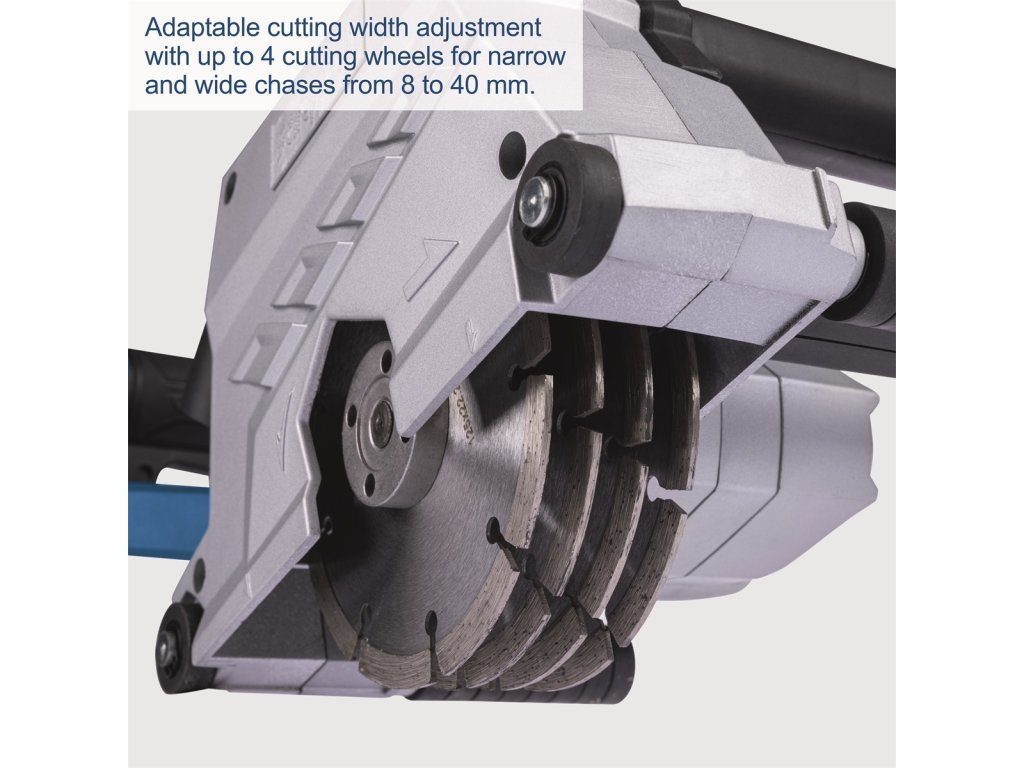 Drážkovací frézka Scheppach MNF 2250 je spolehlivým a efektivním řešením pro vytváření přesných drážek v betonu, zdivu, omítce nebo sádře. Drážky pak slouží k instalaci elektrického vedení, optických kabelů, potrubí apod. Díky výkonnému motoru o příkonu 2250 W a rychlosti 5400 otáček za minutu zvládne i náročné práce s vysokou efektivitou. Frézka je vybavena diamantovými kotouči o průměru 125 mm, které si poradí i s tvrdými materiály. Plynulé nastavení hloubky řezu bez použití nářadí umožňuje maximální flexibilitu – od mělkých drážek až po hloubku 40 mm. Díky dvoustupňové převodovce je přizpůsobení výkonu hloubce drážky snadné. Nastavitelná šířka řezu je další praktickou funkcí. Můžete použít až čtyři řezné kotouče vedle sebe a vytvořit drážky o šířce od 8 do 40 mm, což umožňuje přizpůsobit nástroj různým typům projektů. Výměna kotoučů je rychlá a jednoduchá díky aretaci vřetena. Díky 4 kotoučům je navíc u širších drážek velmi snadné vyčištění zbytků uvnitř drážky (jsou nařezané na tenko). Funkce soft-start zajišťuje pozvolný rozběh motoru, což snižuje opotřebení a chrání zařízení před přetížením. Elektronika udržuje stálý výkon i při větším zatížení, takže fréza pracuje spolehlivě za všech podmínek. S dosahem až 4 metry (díky dlouhému kabelu) máte dostatek volnosti při manipulaci. Přídavná vodicí kolečka na bocích umožňují přesné vedení nástroje po povrchu, což zvyšuje přesnost a kvalitu práce. Ergonomický a kompaktní design s měkčeným povrchem a možností obouručního ovládání zajišťuje pohodlnou práci i při delším použití. Pro čistší pracovní prostředí lze frézu snadno připojit k externímu odsávání prachu. Součástí balení je pevný kufr a čtyři diamantové řezné kotouče o průměru 125 mm, které vám umožní začít pracovat ihned po vybalení.