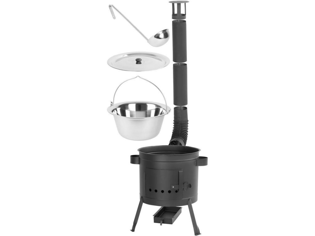 Súprava kotlová Partyset 13 lit. – Kompletný guľášový set: nerezový kotlík, kotlina, dymovod a naberačka