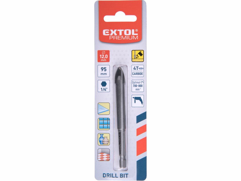 EXTOL PREMIUM 8801892 Vrták do skla a keramiky 12mm, šesťhranná 1/4" stopka