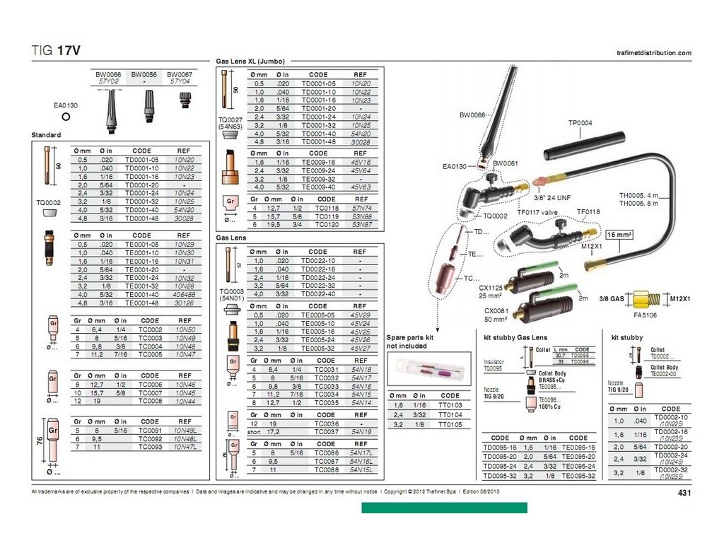 Rozsah použitia wolfram. elektródy: 0,5-2,4 mm